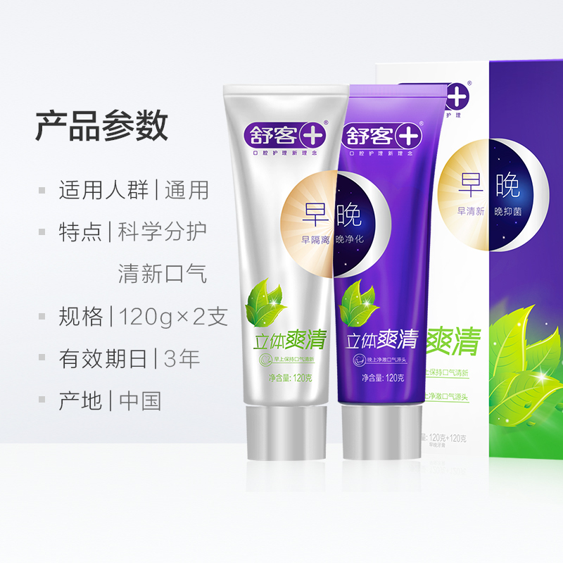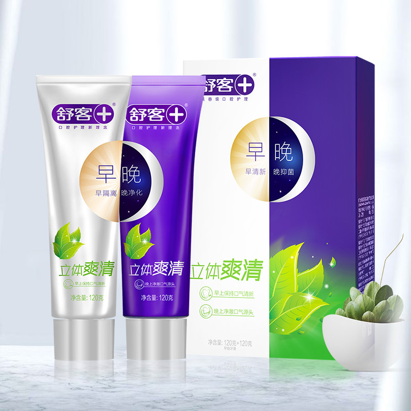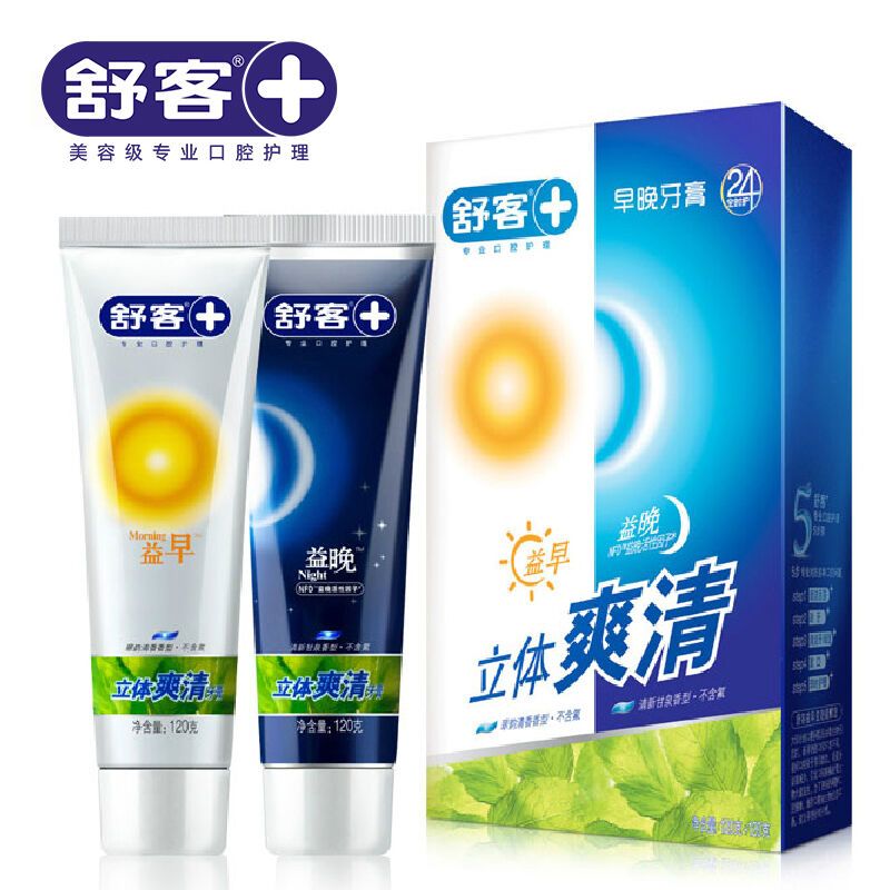 舒客(Saky)益早益晚立体爽清牙膏套装120克+120克