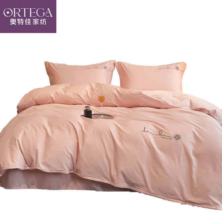 奥特佳 四件套 轻奢纯棉绣花家纺 001-010181 被套200*230c床单255*265cm枕套45*74cm*2 粉色