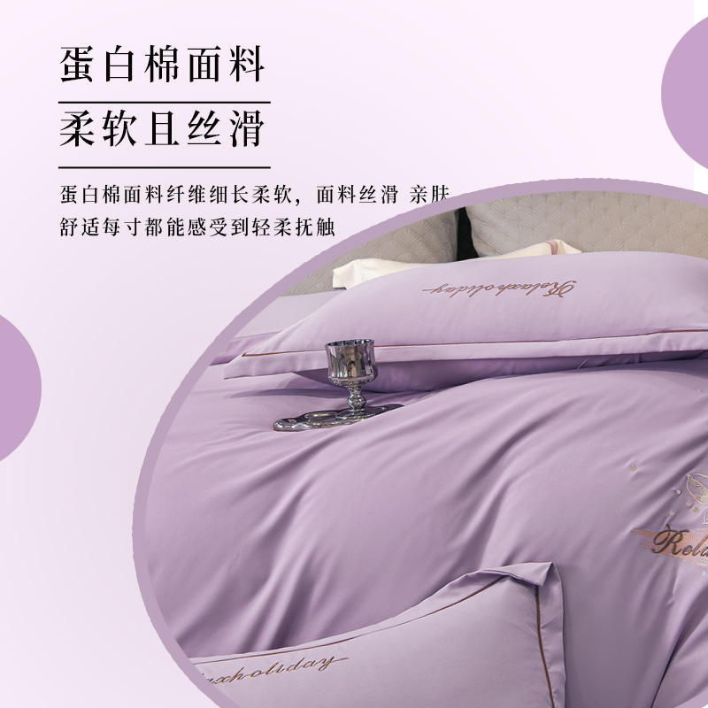 奥特佳 四件套 若琳蛋白家纺 JF010305 被套 200*230cm 床单 250*250cm 枕套 48*74cm*2 紫色