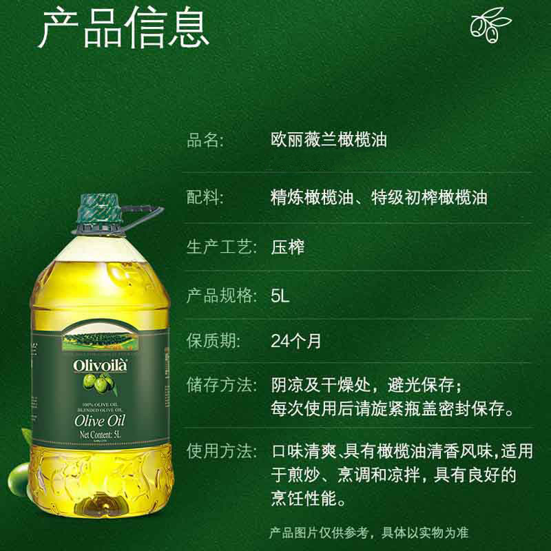 欧丽薇兰 特级初榨橄榄油 压榨 5L